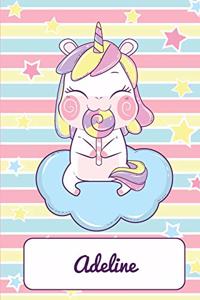 Adeline: Personalized Unicorn Journal For Girls - 8.5x11 110 Pages Notebook/Diary With Pink Name