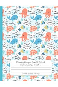 Primary Composition Notebook Handwriting Practice Paper: Cute Cat: with Draw and Write, Dotted Midline and Picture Space for Grade Level K-2 Elementary Students