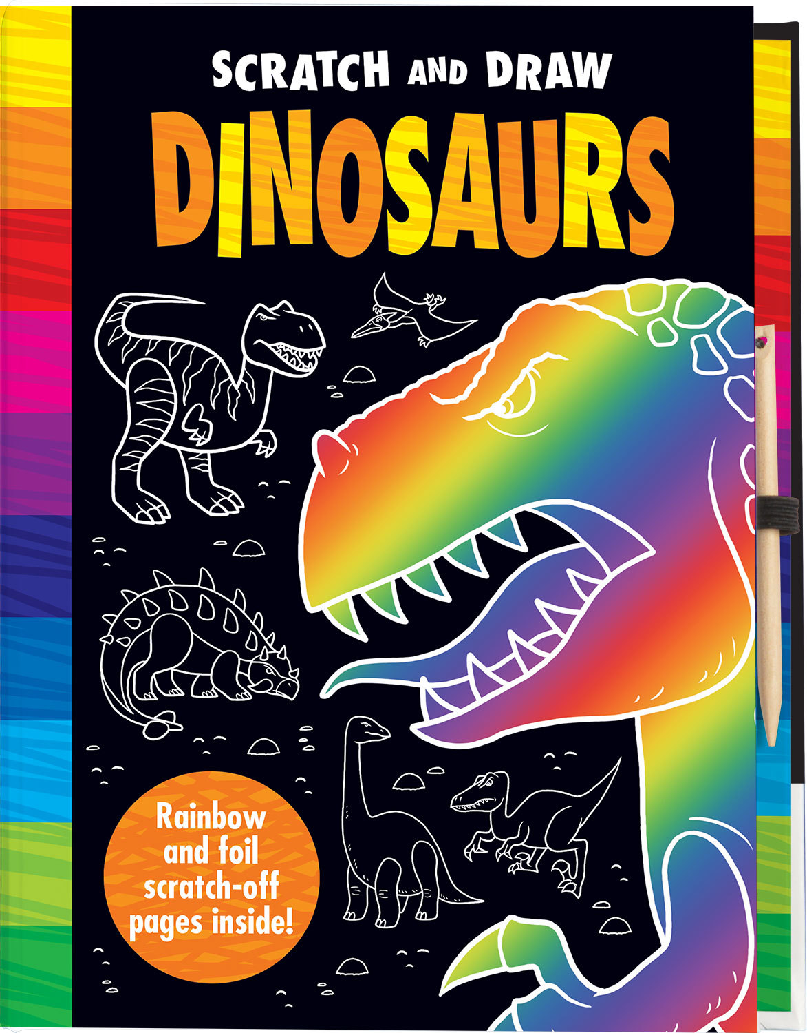 Scratch and draw amazing rainbow and foil effects on the special cards in this creative drawing activity book. This interactive art activity book takes colouring and drawing to another level! Scratch and draw pictures are simple to complete, but the results look fantastic as the rainbow and foil effects are revealed by scratching away the surface of the special cards with the included writing stylus. Scratch and Draw Dinosaurs includes step-by-step instructions to learn how to draw all kinds of amazing prehistoric creatures including Brachiosaurus, Triceratops, Stegosaurus, Tyrannosaurus and more. There is also an exciting dinosaur-themed scratch art adventure story to complete. Creative art activity fun for children age 5 and up.
