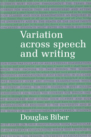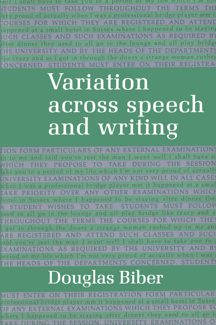 Part I. Background Concepts and Issues: 1. Introduction: textual dimensions and relations; 2. Situations and functions; 3. Previous linguistic research on speech and writing; Part II. Methodology: 4. Methodological overview of the study; 5. Statistical analysis; Part III. Dimensions and Relations in English: 6. Textual dimensions in speech and writing; 7. Textual relations in speech and writing; 8. Extending the description: variations within genres; 9. Afterword: applying the model; Appendices.